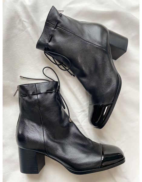 Style tied with a bow, these leather ankle boots are a versatile option for easy styling. Valina features a contrast toe and subtle lacing around the ankle.